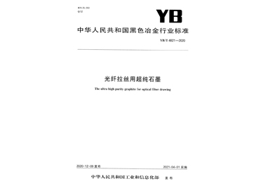 2020年12月 由偉基公司牽頭制定的行業(yè)標(biāo)準—光纖拉絲用超純石墨YB/T4821-2020被工業(yè)和信息化部批準公布,標(biāo)準實施日期2021年4月1日。