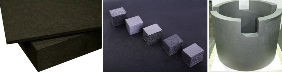 固化石墨氈也叫硬氈,根據(jù)硬氈中纖維長度的不同又分為長纖硬氈和短纖硬氈。長纖硬氈是將軟氈含浸樹脂后進(jìn)行疊層成型固化、石墨化后,形成具有一定形狀和自持性的石墨氈。短纖硬氈是將碳纖維打碎后加入粘結(jié)劑,再成型固化、石墨化處理而成。硬氈的密度一般比軟氈大,另外可以進(jìn)行各種形式的表面處理,如貼石墨紙、貼炭布、貼炭/炭和涂層等。同時,根據(jù)炭纖維的原料種類不同,硬氈又可以分為瀝青基硬氈、聚丙烯腈基硬氈、黏膠基硬氈等。